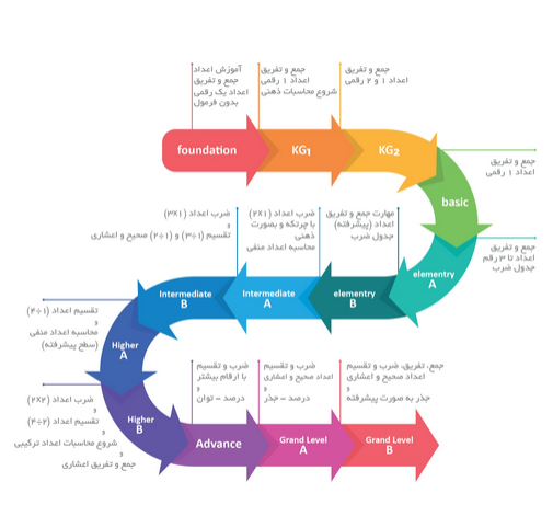 هر سطح از این برنامه سه ماه و نیم طول می‌کشد و هفته‌ای یک جلسه برگزار می‌شود. هر جلسه دو ساعت به طول می‌انجامد و در آن، مهارت‌های محاسبات ذهنی و مهارت‌های ذهنی مانند تمرکز، حافظه، حل مسئله، خلاقیت و تفکر منطقی به کودکان آموزش داده می‌شود.